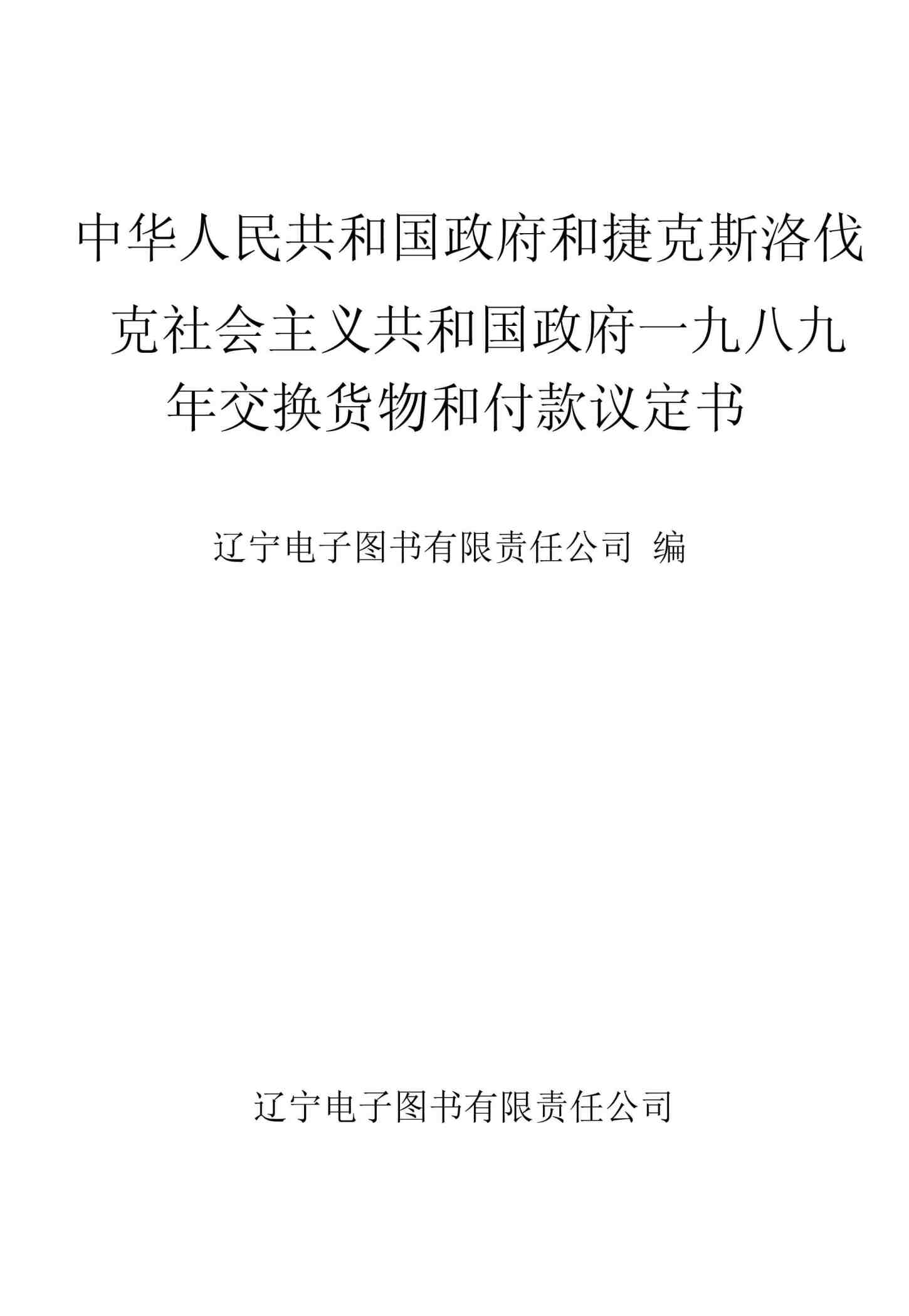 中华人民共和国政府和捷克斯洛伐克社会主义共和国政府一九八九年交换货物和付款议定书