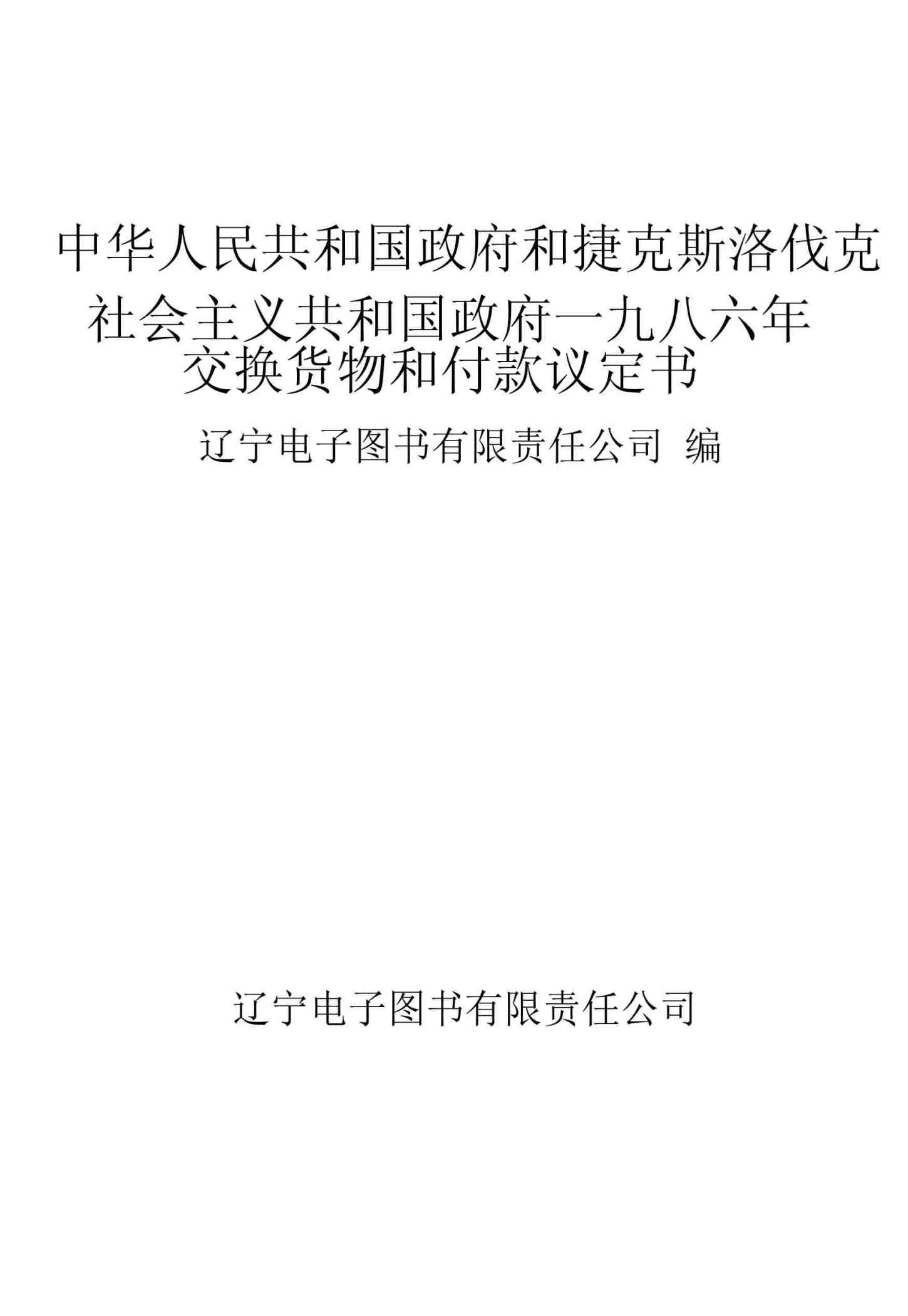 中华人民共和国政府和捷克斯洛伐克社会主义共和国政府一九八六年交换货物和付款议定书