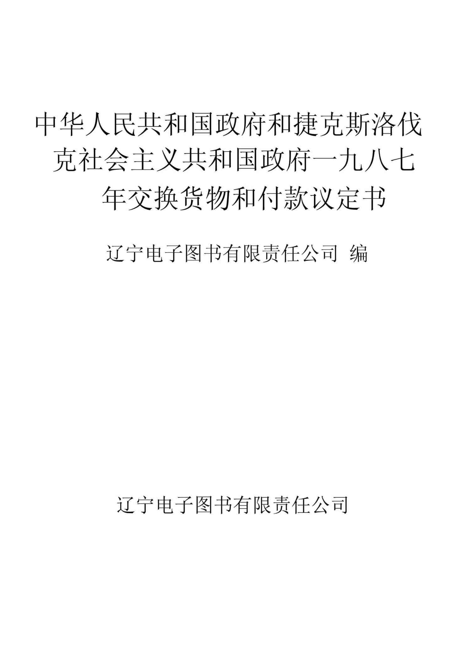 中华人民共和国政府和捷克斯洛伐克社会主义共和国政府一九八七年交换货物和付款议定书