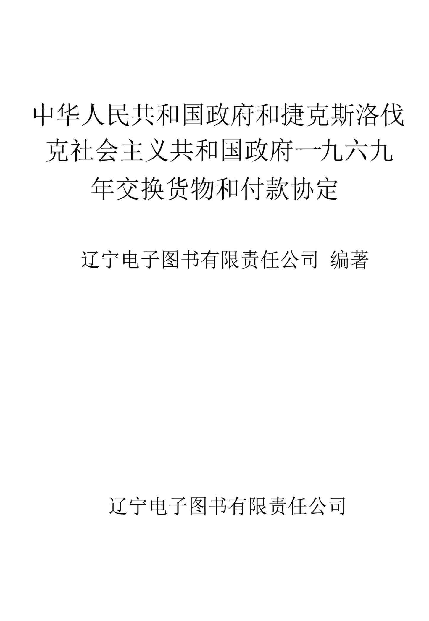 中华人民共和国政府和捷克斯洛伐克社会主义共和国政府一九六九年交换货物和付款协定