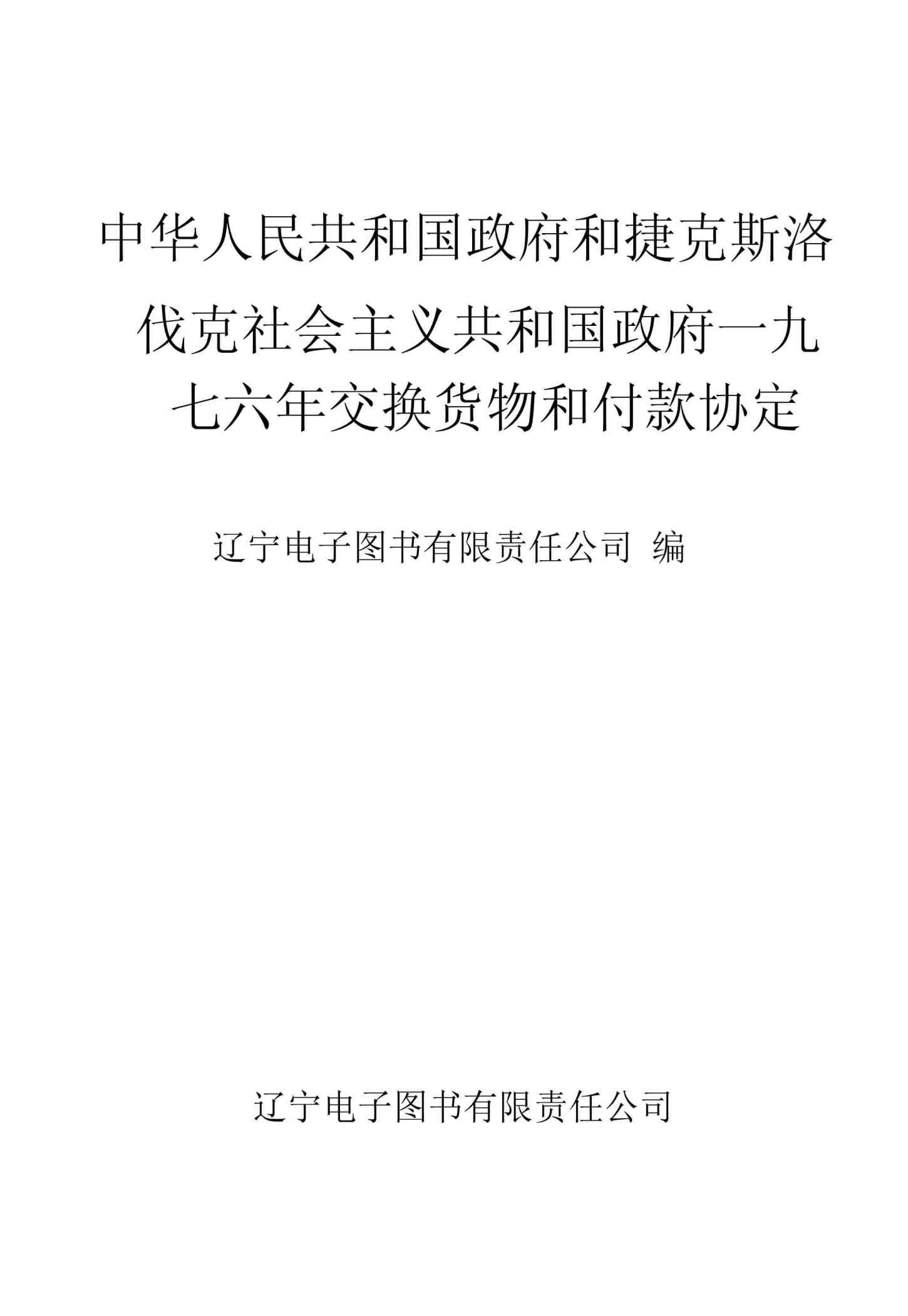 中华人民共和国政府和捷克斯洛伐克社会主义共和国政府一九七六年交换货物和付款协定