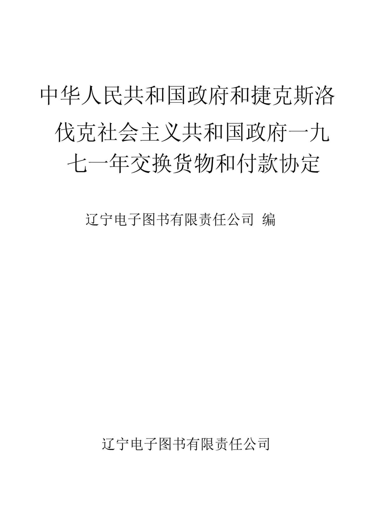 中华人民共和国政府和捷克斯洛伐克社会主义共和国政府一九七一年交换货物和付款协定