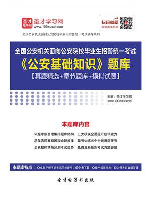 本书特别适用于参加全国公安机关面向公安院校毕业生招警统一考试的考生。本书是详解全国公安机关面向公安院校毕业生招警统一考试《公安基础知识》考试科目的题库,包括真题精选、章节题库和模拟试题三大部分具体如下:第一部分为真题精选。公安招警考试是警察系统面向社会公开考试招录各类警察的一种招考形式,属于公务员考试的一种,招录通过后即是公务员。本书选取具有代表性,能体现考试趋势的最新真题,并给出了详尽的解析,供学员参考。第二部分为章节题库。依据各个地方或单位的招考公告(或大纲)以及历年真题的命题特点合理安排章节,共分为8章,基本每道习题都有详尽的解析,涵盖考试主要知识点。第三部分为模拟试题。根据历年考试真题的命题规律及热门考点进行考前模拟,其试题风格与全国公安机关面向公安院校毕业生招警统一考试真题一样。通过模拟试题的练习,学员既可以用来检测学习该考试科目的效果,又可以用来评估对自己的应试能力。