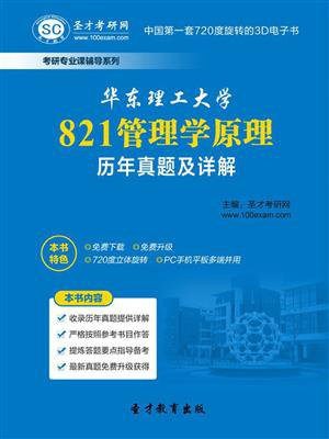 华东理工大学821管理学原理历年真题及详解由圣才考研网组织人员严格按照华东理工大学“821管理学原理”考研指定教材和华东理工大学教师的授课讲义等精心编写而成。本书包括2000~2007、2013年考研真题(完整版,非回忆版),总结华东理工大学“821管理学原理”历年专业课考试高分考生的答题经验,对历年真题进行了详细解答(2000~2004年选择题未给出答案),解题思路清晰、答案翔实。帮助考生在熟练掌握知识点的同时,熟练掌握各种题型的答题技巧,以提高应试技巧,从而增强信心,提高考试分数。为了保证产品质量,圣才考研网每年均根据当年最新考试要求等对本书进行改版升级,我们一旦对该产品的内容有所修订、完善,系统将提示学员下载升级,获得最新版本的产品内容。真正做到一次购买,终身使用。