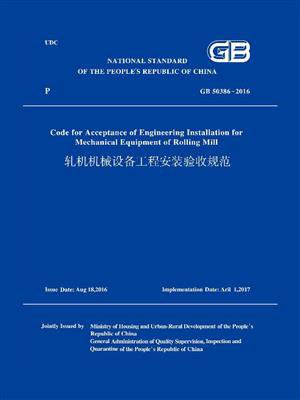 本规范适用于新建、改建和扩建的轧机机械设备工程安装验收。 主要内容包括: 总 则 ,基本规定 ,设备基础、地脚螺栓和垫板,设备和材料 , 轧机设备 , 剪切机 ,开卷机和卷取机 、辊 道 、 冷 床 、运输设备 、 移送和翻转设备 、矫直机 、 活 套 、 焊 机 、加热炉 、辅助设备 、 安全和环保 、附录A 轧机机械设备工程安装分项工程质量验收记录 、附录B 轧机机械设备工程安装分部工程质量验收记录、 附录C 轧机机械设备工程安装单位工程质量验收记录 、附录D 设备无负荷试运转记录 。 中华人民共和国住房和城乡建设部 公 告 第1274号 住房城乡建设部关于发布国家标准《轧机机械设备工程安装验收规范》的公告 现批准《轧机机械设备工程安装验收规范》为国家标准,编号为GB50386-2016,自2017年4月1日起实施。其中,第7.5.1条为强制性条文,必须严格执行。原《轧机机械设备工程安装验收规范》GB50386-2006同时废止。本规范由我部标准定额研究所组织中国计划出版社出版发行。住房城乡建设部 2016年8月18日