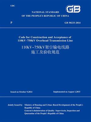现批准《110kV~750kV 架空输电线路施工及验收规范》为国家标准,编号为GB50233―2014,自2015年8月1日起实施。其中,第6.1.2、7.2.1、8.4.1、8.4.7条为强制性条文,必须严格执行。原国家标准《110~500kV 架空送电线路施工及验收规范》GB50233―2005、《750kV 架空送电线路施工及验收规范》GB50389―2006同时废止。 本规范适用于电压等级为110kV~750kV 的交流架空输电线路的新建、改建及扩建工程的施工与验收。